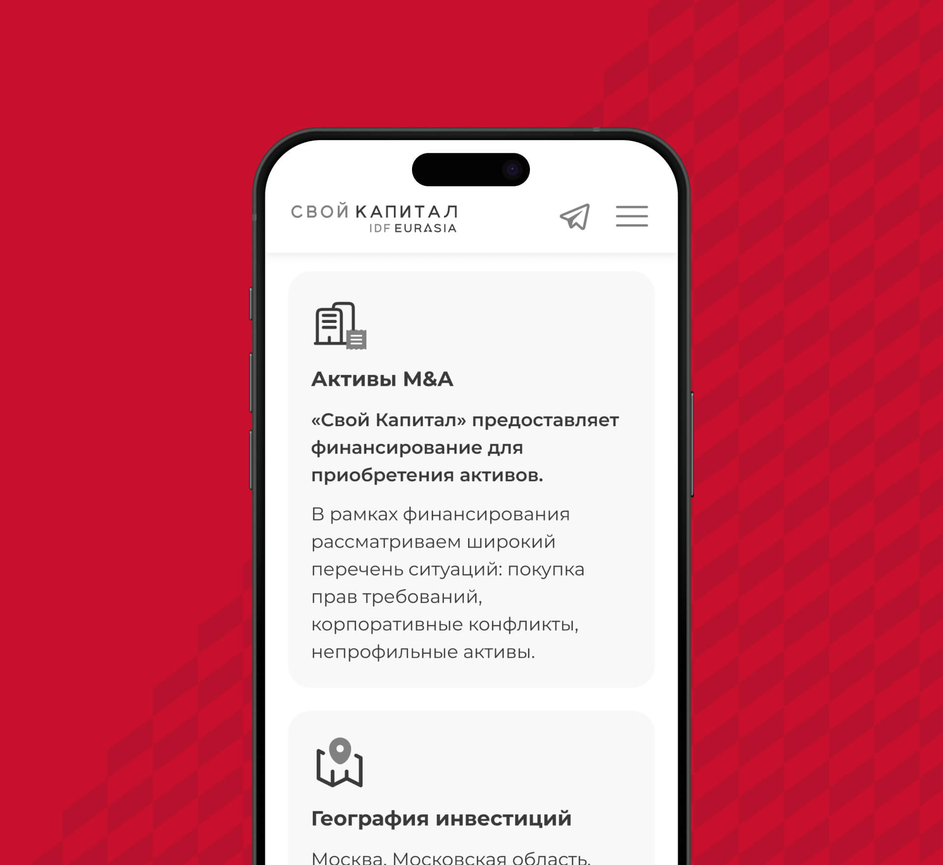 Свой Капитал предлагает комплексные инвестиционные решения для частных и корпоративных клиентов в направлении размещения капитала в инвестиционные займы, паевые инвестиционные фонды и другие стратегии.